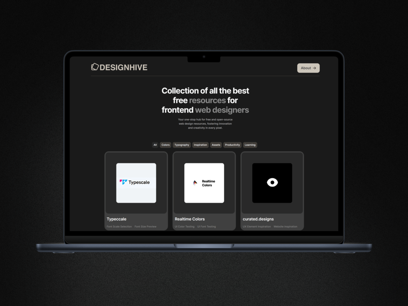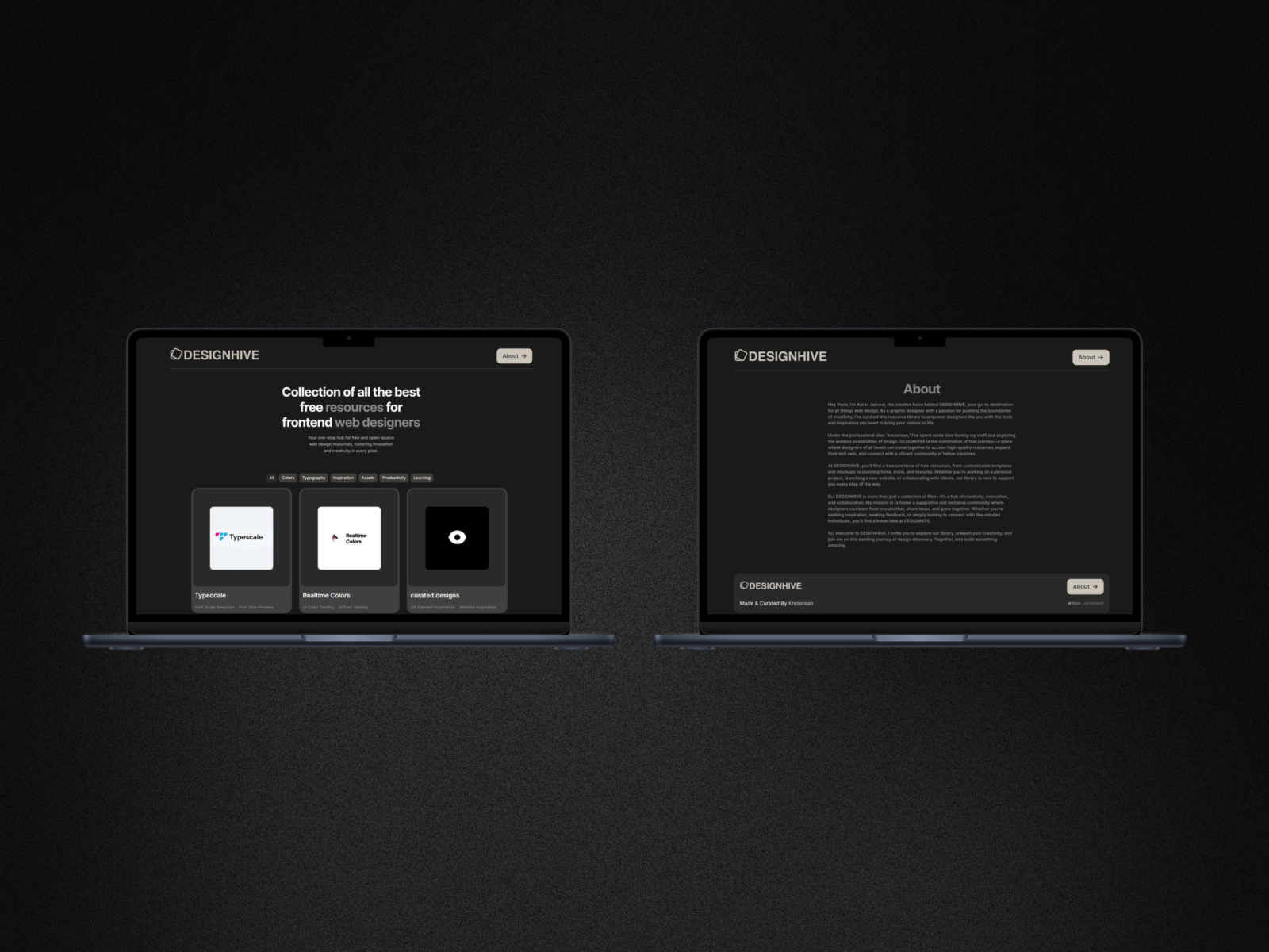 DesignHive is a curated collection of resources for front-end developers and designers, carefully assembled from my personal experience. This project aims to provide a one-stop hub of tools, tutorials, and inspiration to streamline the design and development process. Each resource is handpicked for its quality and relevance, ensuring that it meets the needs of both seasoned professionals and those just starting out in the field. With DesignHive, I’ve created a space that empowers others to create beautiful, functional digital experiences.